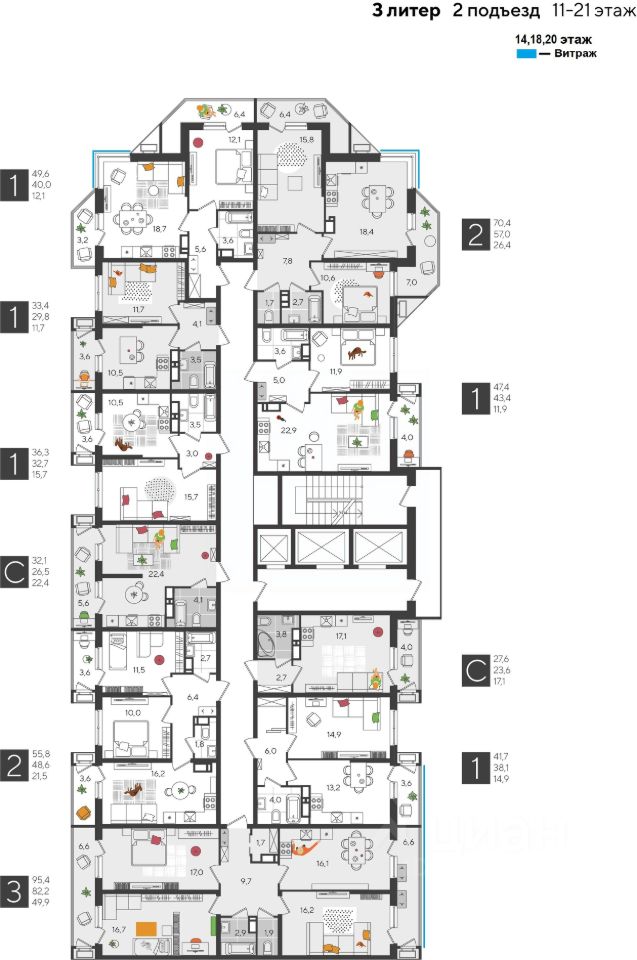 В продаже 2-комнатная квартира от застройщика! ЖК "Рекорд" 2 очередь, г. Краснодар, Литер 3 Срок сдачи: 4 кв. 2026, общей площадью 70.4 кв.м., на 18 этаже.