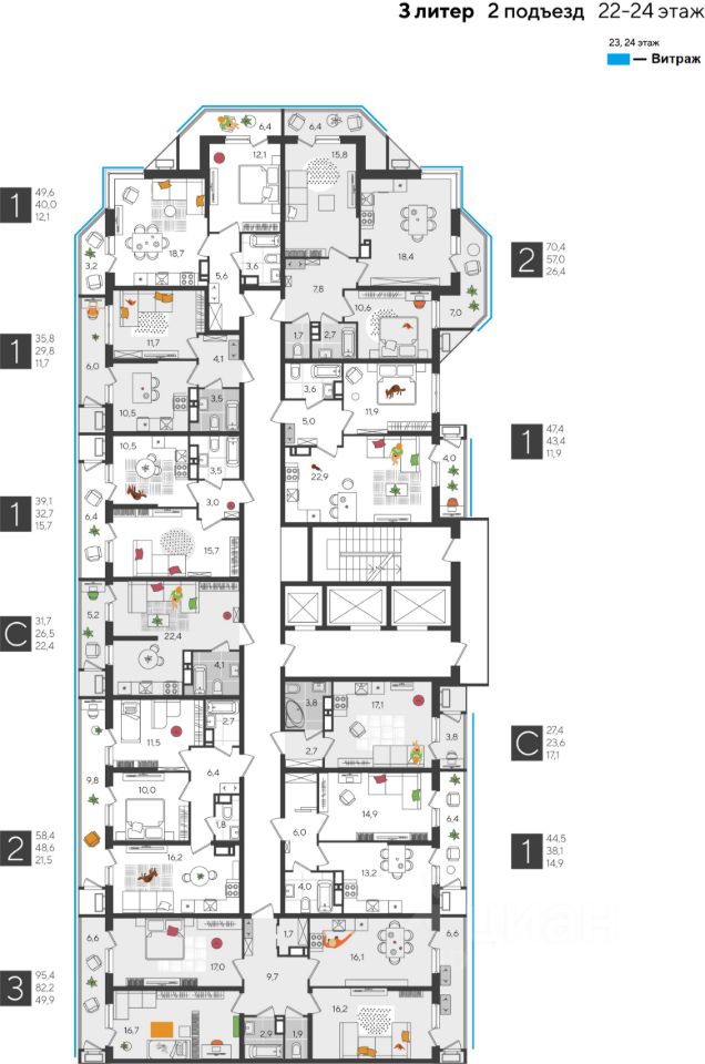 В продаже 3-комнатная квартира от застройщика! ЖК "Рекорд" 2 очередь, г. Краснодар, Литер 3 Срок сдачи: 4 кв. 2026, общей площадью 95.4 кв.м., на 24 этаже.