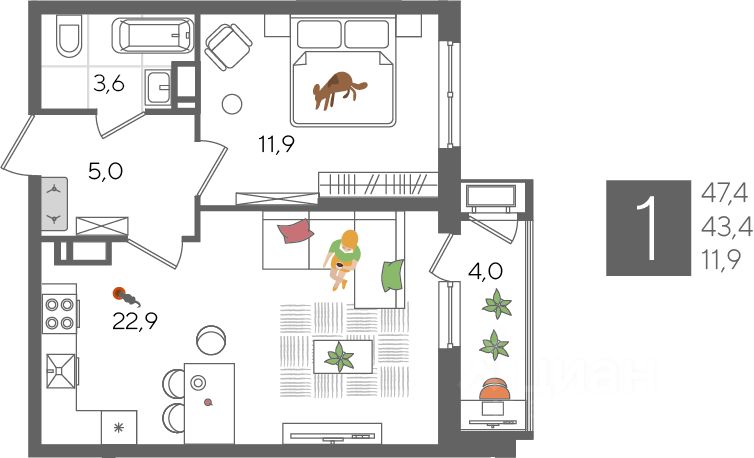В продаже 1-комнатная квартира от застройщика! ЖК "Рекорд" 2 очередь, г. Краснодар, Литер 3 Срок сдачи: 4 кв. 2026, общей площадью 47.4 кв.м., на 24 этаже.