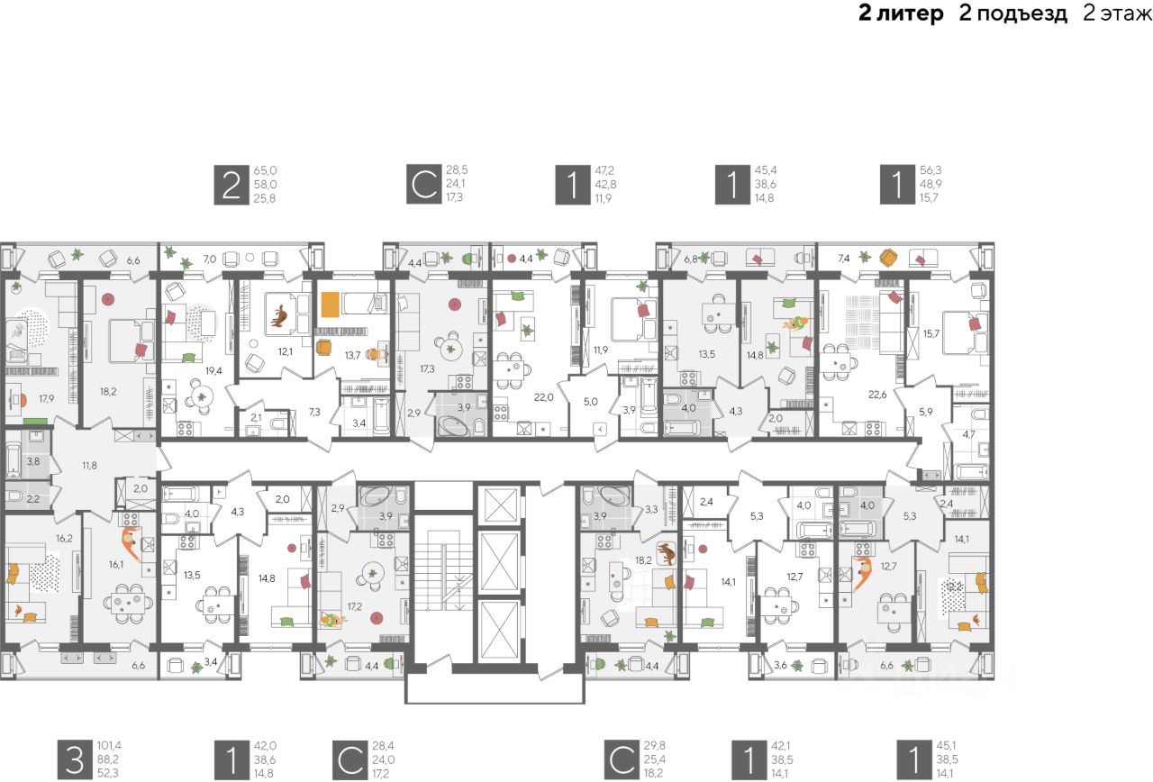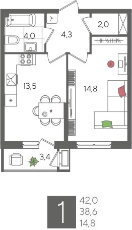 В продаже 1-комнатная квартира от застройщика! ЖК "Рекорд" 2 очередь, г. Краснодар, Литер 2 Срок сдачи: 4 кв. 2026, общей площадью 42 кв.м., на 2 этаже.