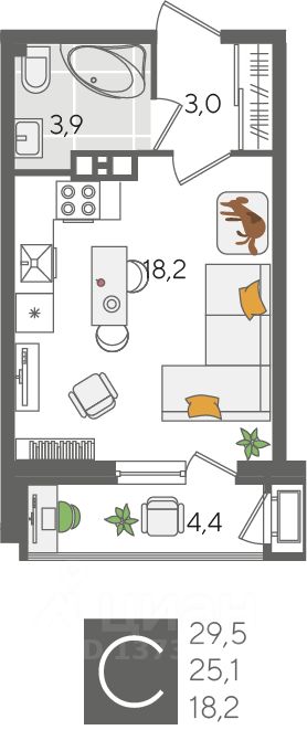 В продаже квартира-студия от застройщика! ЖК "Рекорд" 2 очередь, г. Краснодар, Литер 2 Срок сдачи: 4 кв. 2026, общей площадью 29.5 кв.м., на 3 этаже.