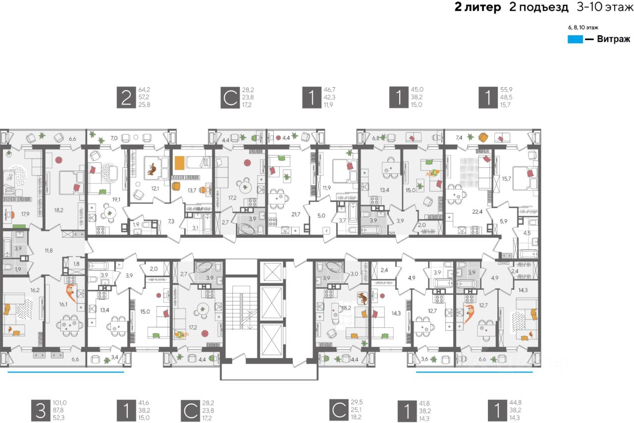 В продаже 3-комнатная квартира от застройщика! ЖК "Рекорд" 2 очередь, г. Краснодар, Литер 2 Срок сдачи: 4 кв. 2026, общей площадью 101 кв.м., на 8 этаже.