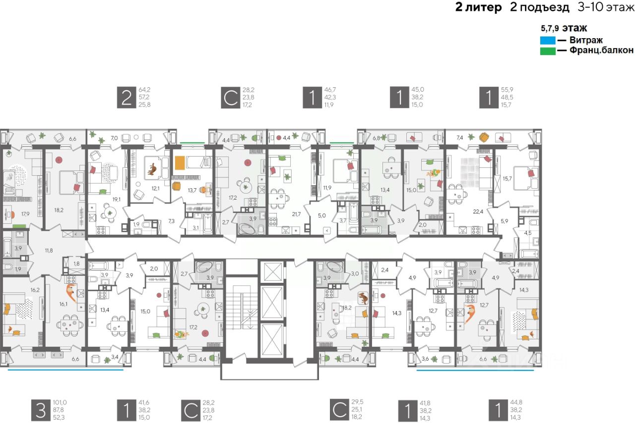 В продаже 1-комнатная квартира от застройщика! ЖК "Рекорд" 2 очередь, г. Краснодар, Литер 2 Срок сдачи: 4 кв. 2026, общей площадью 55.9 кв.м., на 9 этаже.