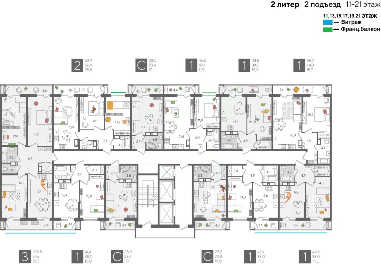 В продаже 3-комнатная квартира от застройщика! ЖК "Рекорд" 2 очередь, г. Краснодар, Литер 2 Срок сдачи: 4 кв. 2026, общей площадью 100.8 кв.м., на 13 этаже.