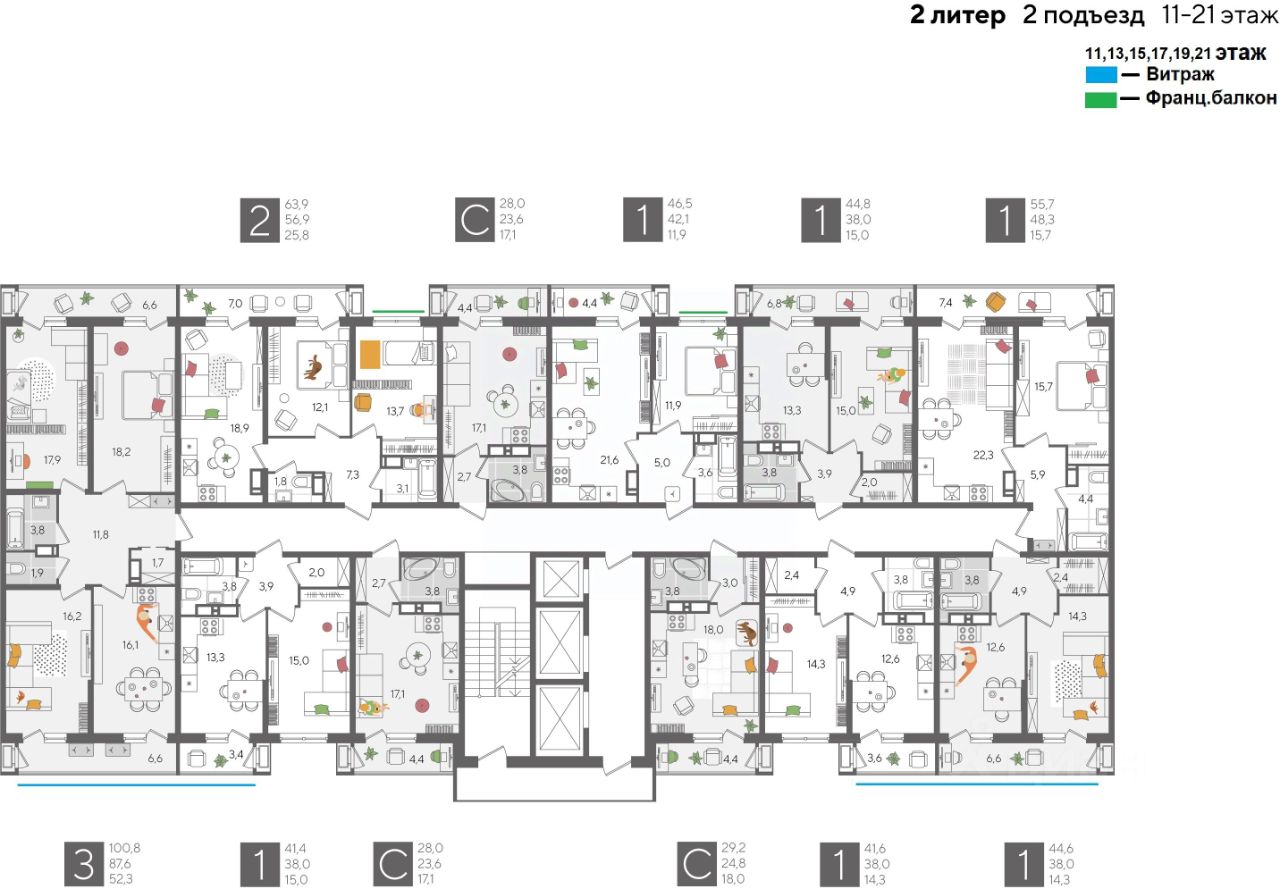 В продаже 3-комнатная квартира от застройщика! ЖК "Рекорд" 2 очередь, г. Краснодар, Литер 2 Срок сдачи: 4 кв. 2026, общей площадью 100.8 кв.м., на 21 этаже.