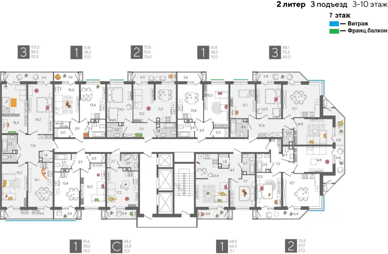 В продаже 3-комнатная квартира от застройщика! ЖК "Рекорд" 2 очередь, г. Краснодар, Литер 2 Срок сдачи: 4 кв. 2026, общей площадью 101.5 кв.м., на 7 этаже.