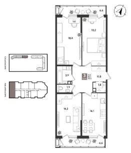 В продаже 3-к квартира от застройщика! ЖК "Рекорд" 2 очередь, г. Краснодар, Литер 2. Срок сдачи: 2 кв. 2026, общей площадью 100.8 кв.м., на 7 этаже.