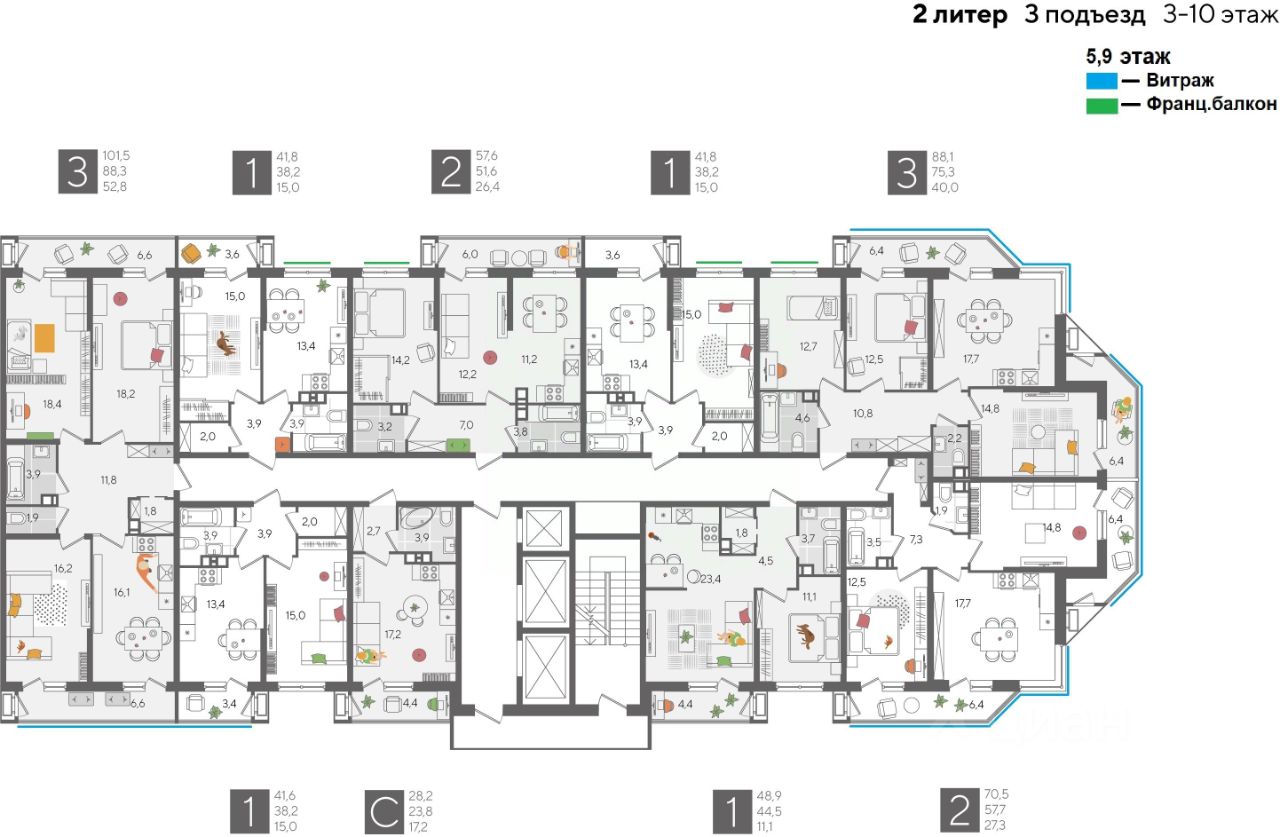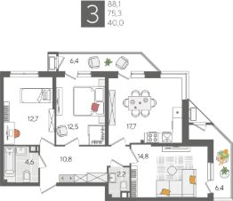 В продаже 3-комнатная квартира от застройщика! ЖК "Рекорд" 2 очередь, г. Краснодар, Литер 2 Срок сдачи: 4 кв. 2026, общей площадью 88.1 кв.м., на 9 этаже.