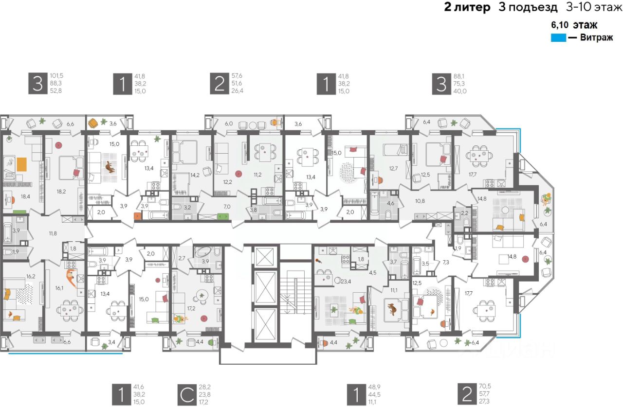 В продаже 3-комнатная квартира от застройщика! ЖК "Рекорд" 2 очередь, г. Краснодар, Литер 2 Срок сдачи: 4 кв. 2026, общей площадью 101.5 кв.м., на 10 этаже.
