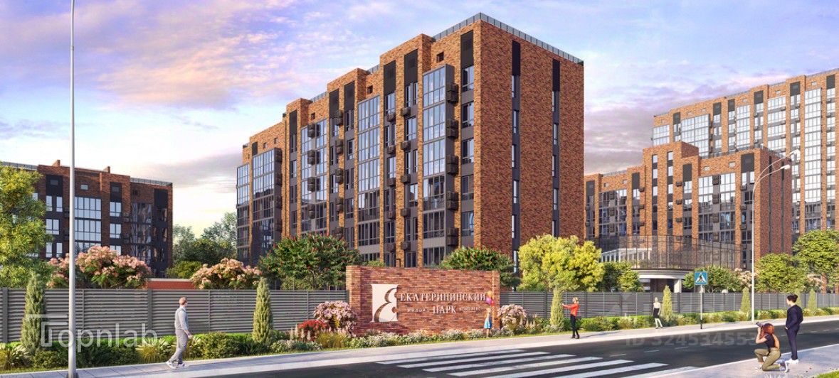 Выразительная архитектура, грамотное сочетание материалов, органичные цветовые решения Жилищного комплекса "Екатерининский парк" выделяется на фоне застройки не только Фестивального микрорайона, но и всего Краснодара в целом. ЖК премиум-класса - один из самых новых и технологичных комплексов в ФМР. В основе архитектурной концепции каскадность жилой застройки, а фасад здания облицован керамическим кирпичом и керамогранитом.