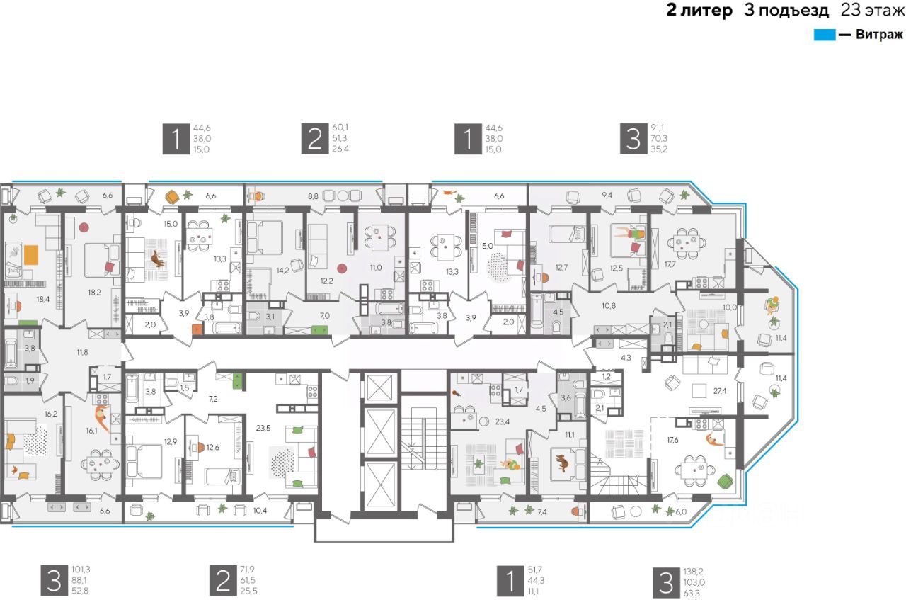В продаже 3-комнатная квартира от застройщика! ЖК "Рекорд" 2 очередь, г. Краснодар, Литер 2 Срок сдачи: 4 кв. 2026, общей площадью 91.1 кв.м., на 23 этаже.