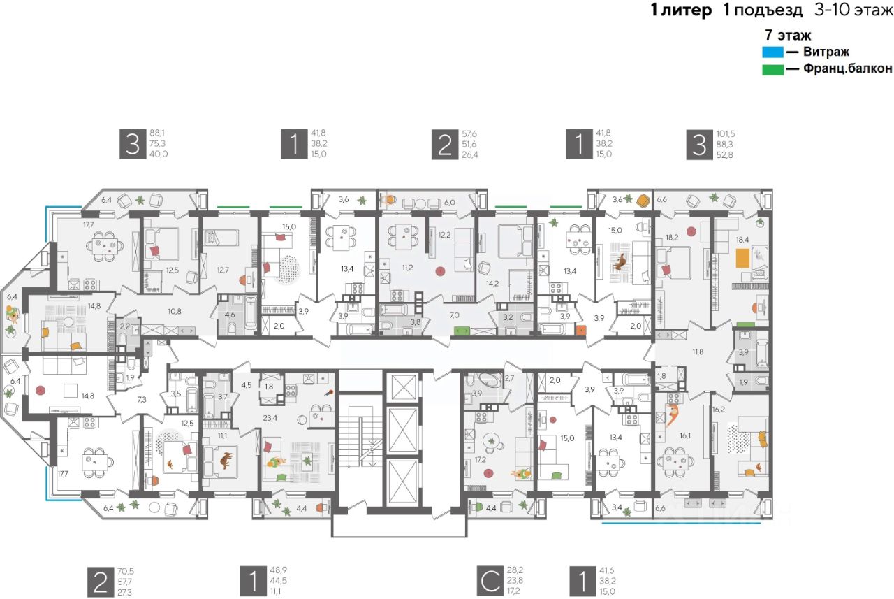В продаже 3-комнатная квартира от застройщика! ЖК "Рекорд" 2 очередь, г. Краснодар, Литер 1 Срок сдачи: 4 кв. 2026, общей площадью 101.5 кв.м., на 7 этаже.