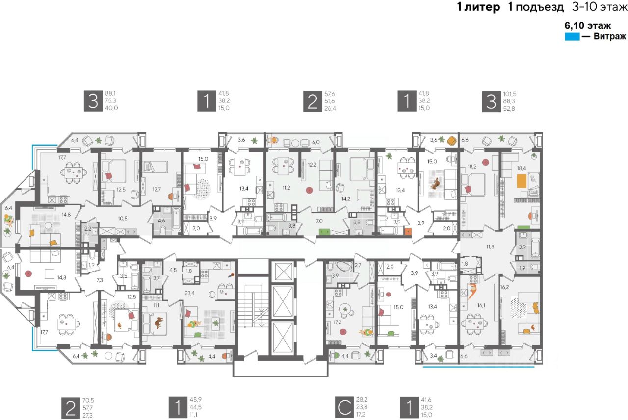 В продаже 3-комнатная квартира от застройщика! ЖК "Рекорд" 2 очередь, г. Краснодар, Литер 1 Срок сдачи: 4 кв. 2026, общей площадью 101.5 кв.м., на 10 этаже.