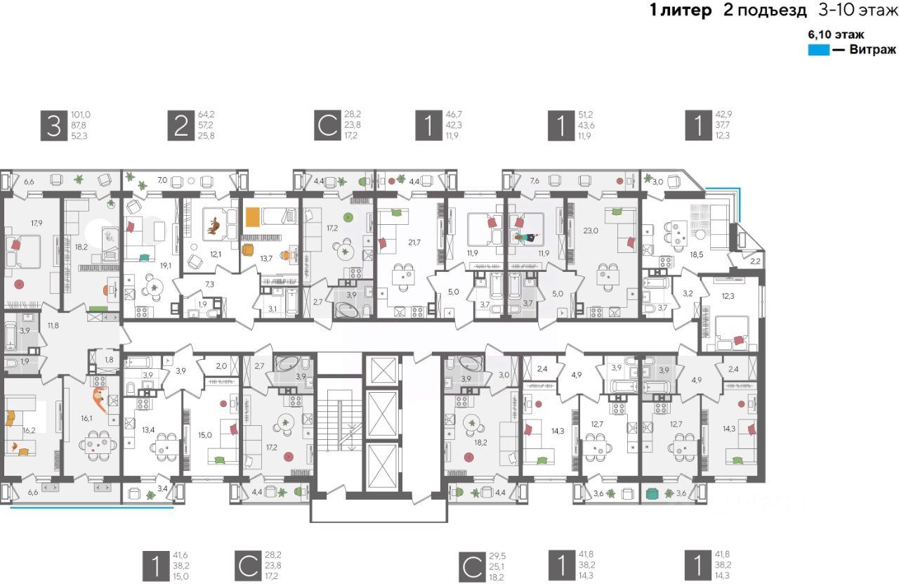 В продаже 3-комнатная квартира от застройщика! ЖК "Рекорд" 2 очередь, г. Краснодар, Литер 1 Срок сдачи: 4 кв. 2026, общей площадью 101 кв.м., на 6 этаже.