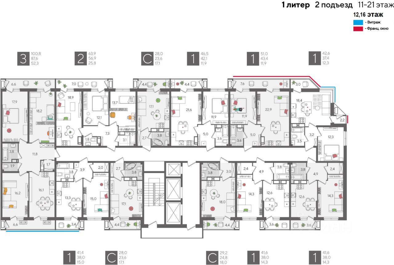 В продаже 3-комнатная квартира от застройщика! ЖК "Рекорд" 2 очередь, г. Краснодар, Литер 1 Срок сдачи: 4 кв. 2026, общей площадью 100.8 кв.м., на 16 этаже.