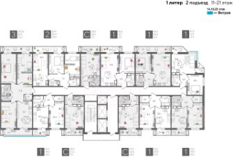 В продаже 1-комнатная квартира от застройщика! ЖК "Рекорд" 2 очередь, г. Краснодар, Литер 1 Срок сдачи: 4 кв. 2026, общей площадью 51 кв.м., на 18 этаже.