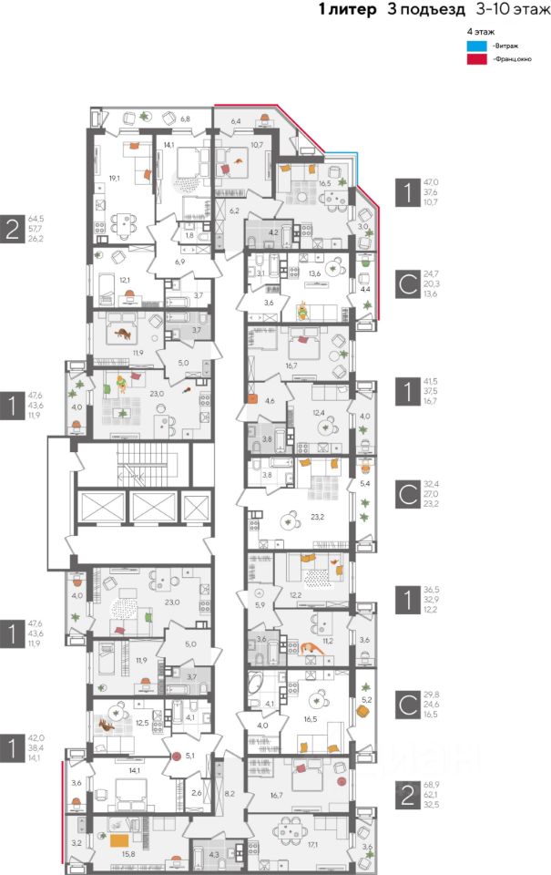 В продаже 2-комнатная квартира от застройщика! ЖК "Рекорд" 2 очередь, г. Краснодар, Литер 1 Срок сдачи: 4 кв. 2026, общей площадью 64.5 кв.м., на 4 этаже.