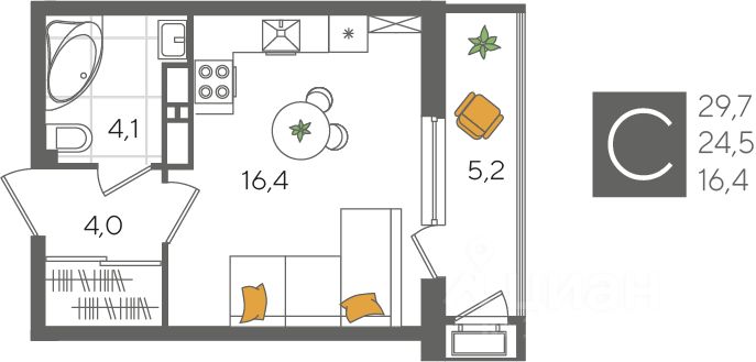 В продаже квартира-студия от застройщика! ЖК "Рекорд" 2 очередь, г. Краснодар, Литер 1 Срок сдачи: 4 кв. 2026, общей площадью 29.7 кв.м., на 15 этаже.