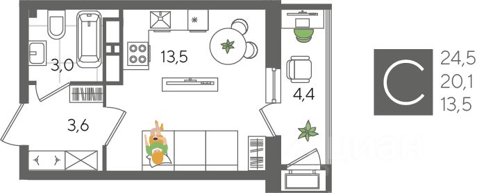 В продаже квартира-студия от застройщика! ЖК "Рекорд" 2 очередь, г. Краснодар, Литер 1 Срок сдачи: 4 кв. 2026, общей площадью 24.5 кв.м., на 19 этаже.
