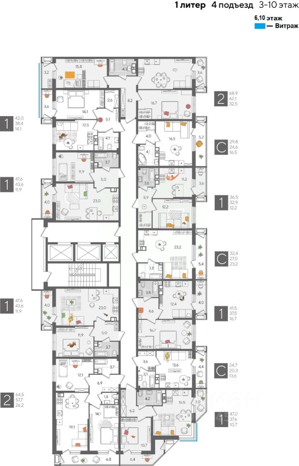 В продаже 1-комнатная квартира от застройщика! ЖК "Рекорд" 2 очередь, г. Краснодар, Литер 1 Срок сдачи: 4 кв. 2026, общей площадью 47 кв.м., на 6 этаже.