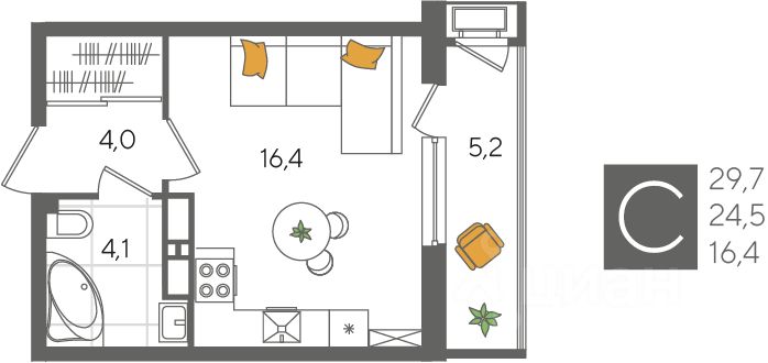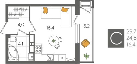 В продаже квартира-студия от застройщика! ЖК "Рекорд" 2 очередь, г. Краснодар, Литер 1 Срок сдачи: 4 кв. 2026, общей площадью 29.7 кв.м., на 21 этаже.