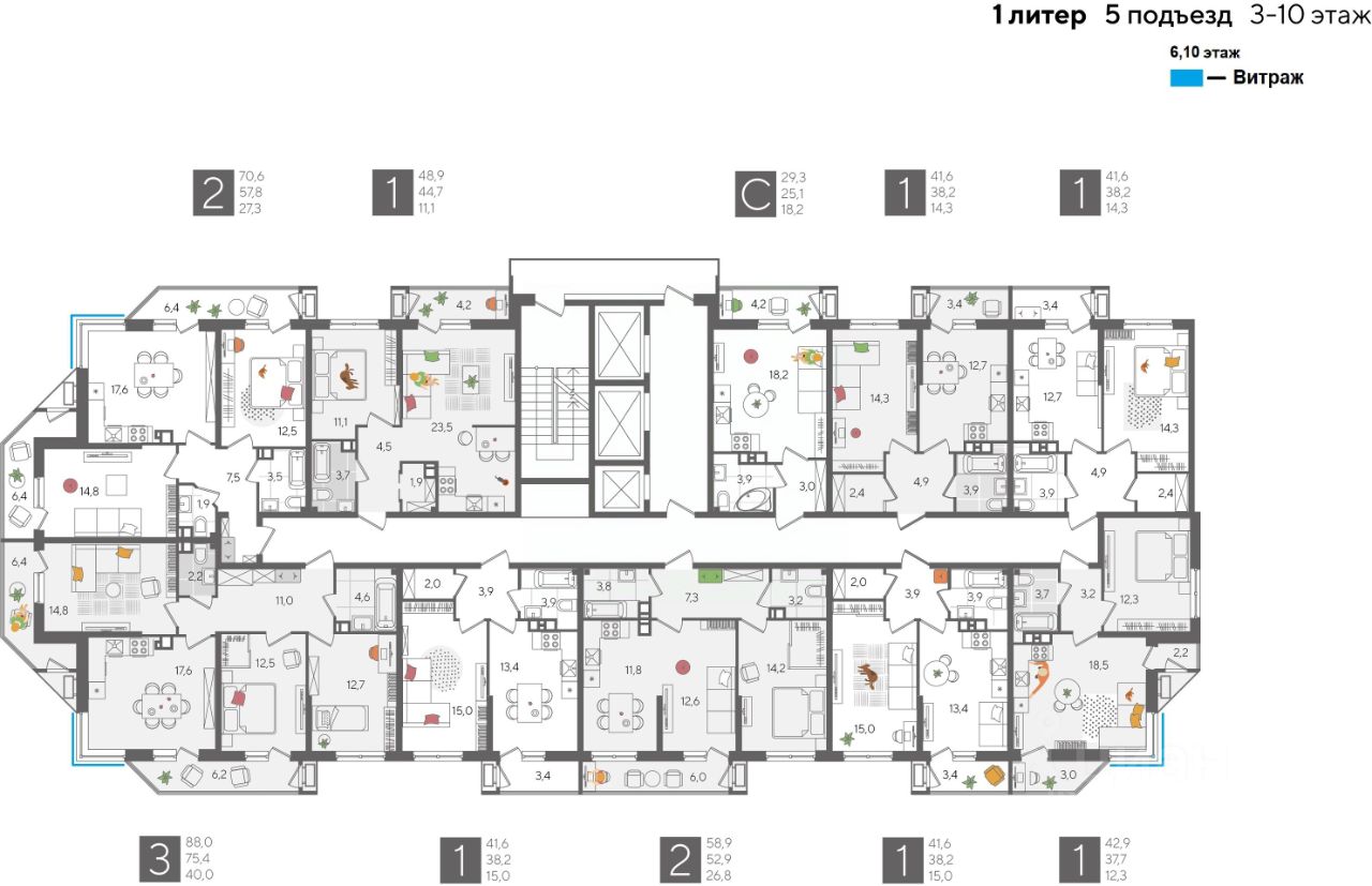 В продаже 2-комнатная квартира от застройщика! ЖК "Рекорд" 2 очередь, г. Краснодар, Литер 1 Срок сдачи: 4 кв. 2026, общей площадью 70.6 кв.м., на 6 этаже.