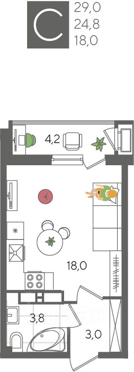 В продаже квартира-студия от застройщика! ЖК "Рекорд" 2 очередь, г. Краснодар, Литер 1 Срок сдачи: 4 кв. 2026, общей площадью 29 кв.м., на 20 этаже.