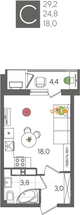В продаже квартира-студия от застройщика! ЖК "Рекорд" 2 очередь, г. Краснодар, Литер 1 Срок сдачи: 4 кв. 2026, общей площадью 29.2 кв.м., на 22 этаже.