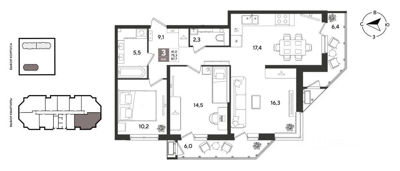 В продаже 3-к квартира от застройщика! ЖК "Рекорд" 2 очередь, г. Краснодар, Литер 4. Срок сдачи: 2 кв. 2026, общей площадью 87.7 кв.м., на 2 этаже.