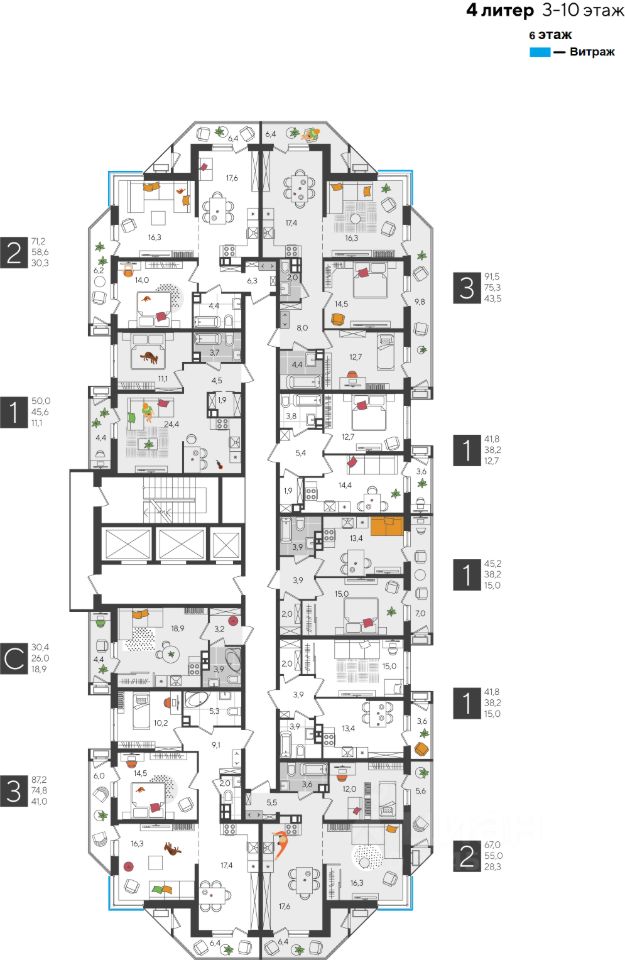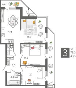 В продаже 3-комнатная квартира от застройщика! ЖК "Рекорд" 2 очередь, г. Краснодар, Литер 4 Срок сдачи: 4 кв. 2026, общей площадью 91.5 кв.м., на 6 этаже.