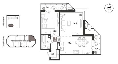В продаже 2-к квартира от застройщика! ЖК "Рекорд" 2 очередь, г. Краснодар, Литер 4. Срок сдачи: 2 кв. 2026, общей площадью 67 кв.м., на 6 этаже.