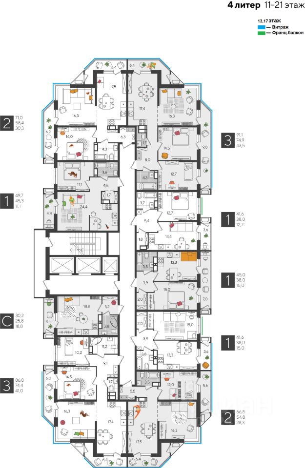 В продаже 3-комнатная квартира от застройщика! ЖК "Рекорд" 2 очередь, г. Краснодар, Литер 4 Срок сдачи: 4 кв. 2026, общей площадью 91.1 кв.м., на 13 этаже.