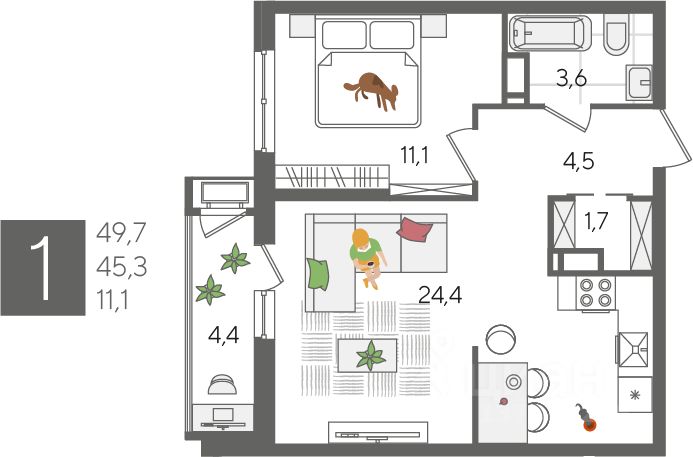 В продаже 1-комнатная квартира от застройщика! ЖК "Рекорд" 2 очередь, г. Краснодар, Литер 4 Срок сдачи: 4 кв. 2026, общей площадью 49.7 кв.м., на 19 этаже.