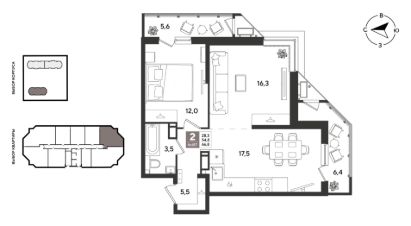 В продаже 2-комнатная квартира от застройщика! ЖК "Рекорд" 2 очередь, г. Краснодар, Литер 4 Срок сдачи: 2 кв. 2026, общей площадью 66.8 кв.м., на 22 этаже.