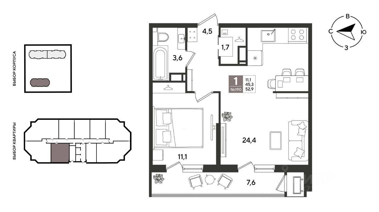 В продаже 1-к квартира от застройщика! ЖК "Рекорд" 2 очередь, г. Краснодар, Литер 4. Срок сдачи: 2 кв. 2026, общей площадью 52.9 кв.м., на 23 этаже.
