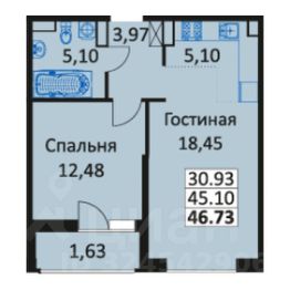 Oбщая плoщaдь 44,8 м2 по выписке + лoджия 3м2