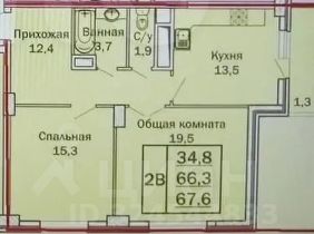 Планировка: кухня-гостиная + две спальни площадью 15 м² .