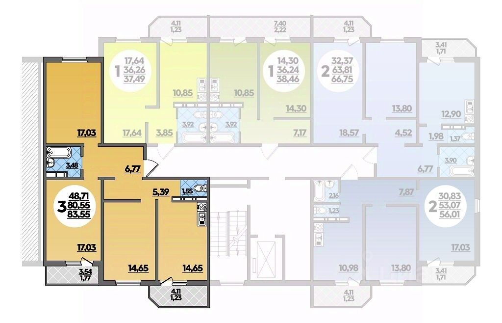Продаётся 3-комнатная квартира в сданном доме (Литер 6), срок сдачи: II-кв. 2024, общей площадью 83.55 кв.м., на 4 этаже. РАСПОЛОЖЕНИЕ