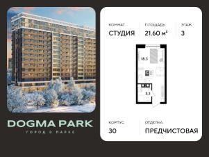 В продаже квартира-студия от застройщика! Мкр. "ДОГМА ПАРК" г. Краснодар, Литер 30 Срок сдачи: 2 кв. 2027, общей площадью 21.60 кв.м., на 3 этаже.