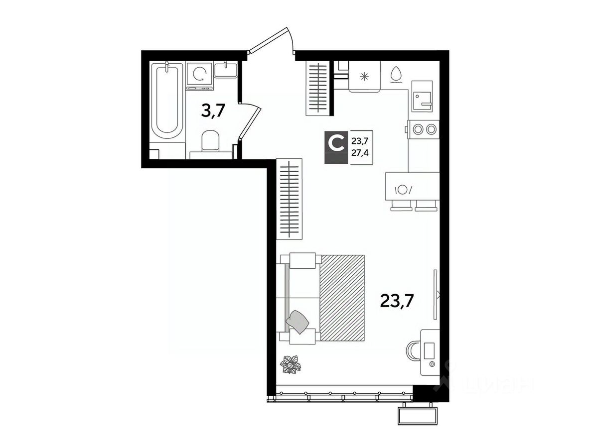 В продаже квартира-студия от застройщика! Мкр. "DOGMA PARK" г. Краснодар, Литер 30 Срок сдачи: 3 кв. 2027, общей площадью 27.4 кв.м., на 2 этаже.