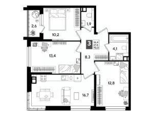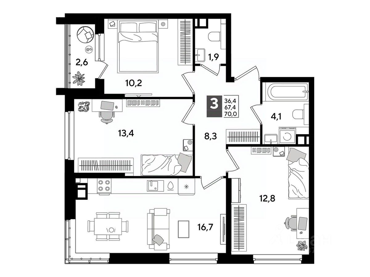 В продаже 3-комнатная квартира от застройщика! Мкр. "DOGMA PARK" г. Краснодар, Литер 19 Срок сдачи: 4 кв. 2027, общей площадью 68.4 кв.м., на 8 этаже.