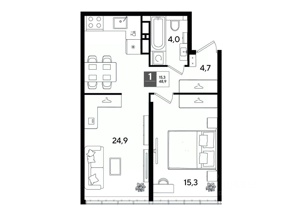 В продаже 1-комнатная квартира от застройщика! Мкр. "DOGMA PARK" г. Краснодар, Литер 23 Срок сдачи: 4 кв. 2027, общей площадью 48.9 кв.м., на 16 этаже.