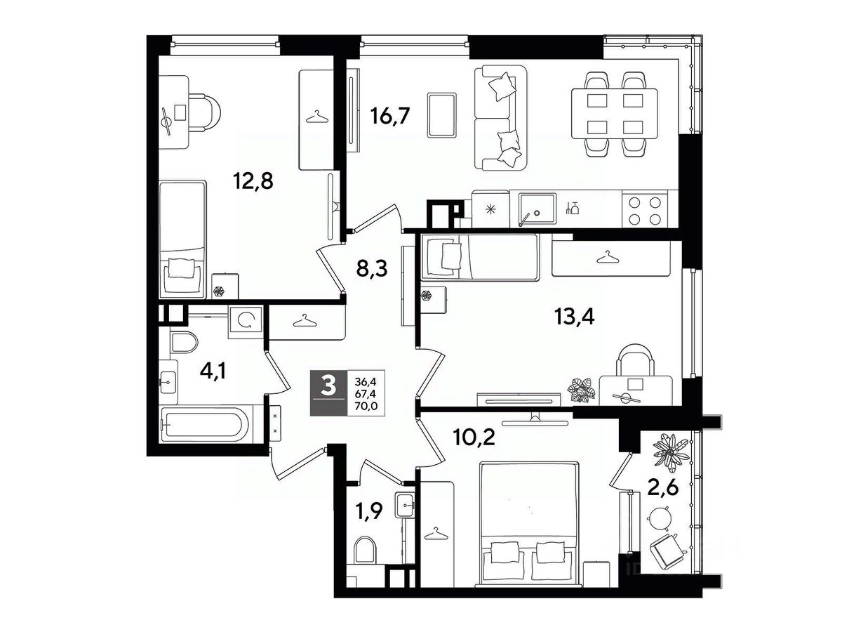 В продаже 3-комнатная квартира от застройщика! Мкр. "DOGMA PARK" г. Краснодар, Литер 23 Срок сдачи: 4 кв. 2027, общей площадью 70 кв.м., на 5 этаже.