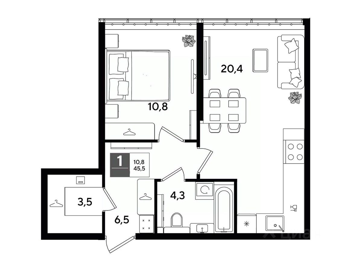 В продаже 1-комнатная квартира от застройщика! Мкр. "DOGMA PARK" г. Краснодар, Литер 23 Срок сдачи: 4 кв. 2027, общей площадью 45.5 кв.м., на 2 этаже.