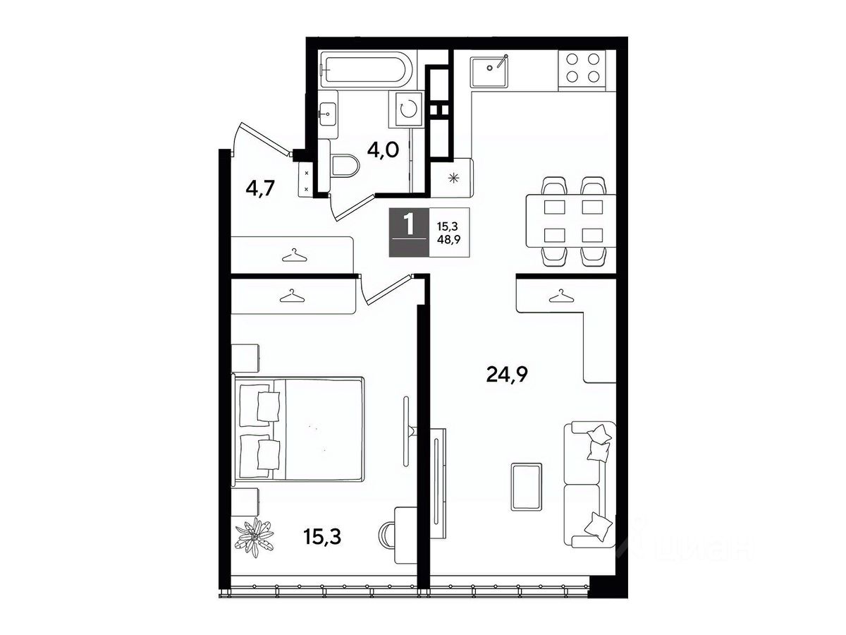 В продаже 1-комнатная квартира от застройщика! Мкр. "DOGMA PARK" г. Краснодар, Литер 23 Срок сдачи: 4 кв. 2027, общей площадью 48.9 кв.м., на 16 этаже.