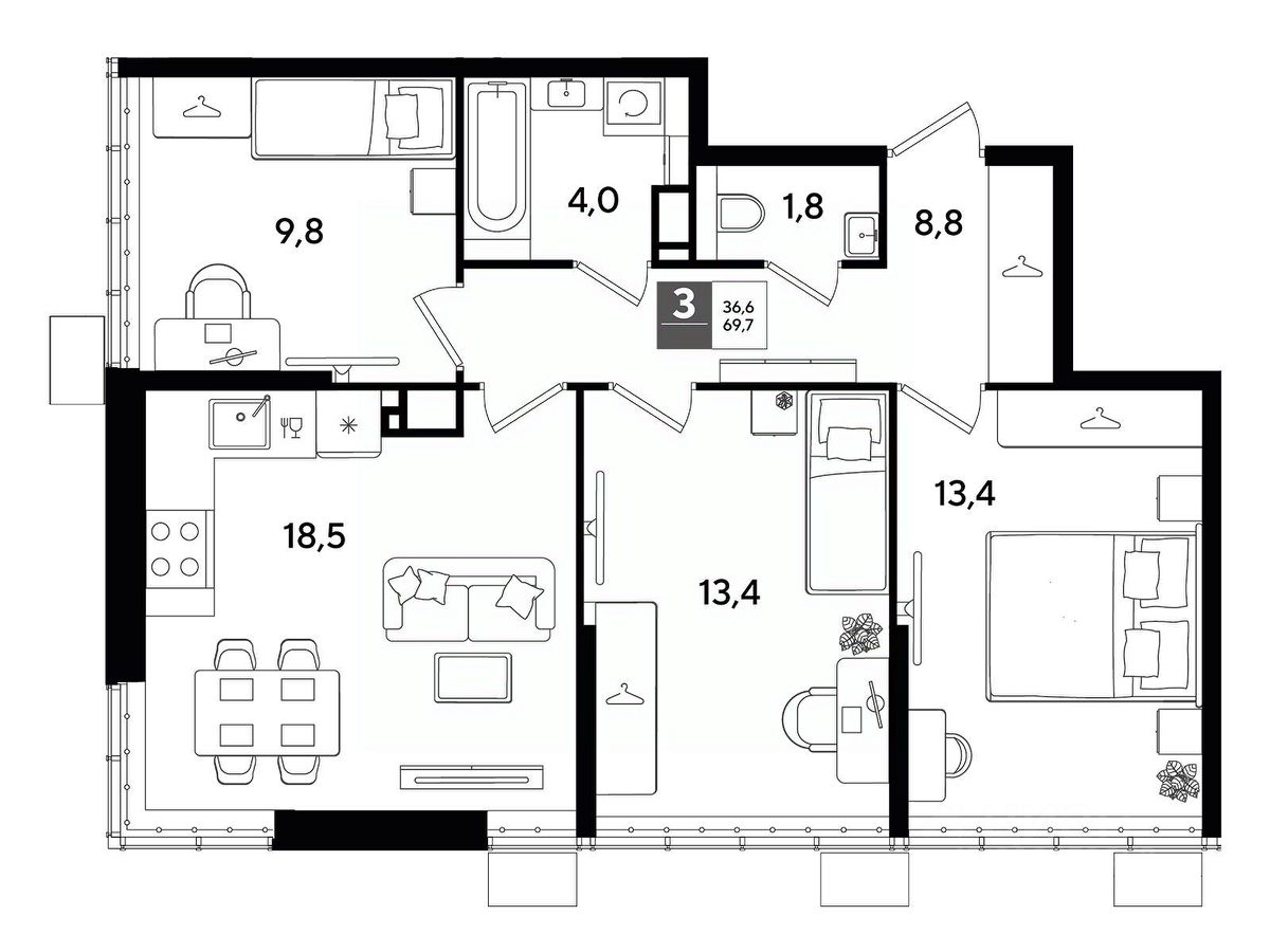 В продаже 3-комнатная квартира от застройщика! Мкр. "DOGMA PARK" г. Краснодар, Литер 7 Срок сдачи: 4 кв. 2026, общей площадью 68.7 кв.м., на 16 этаже.