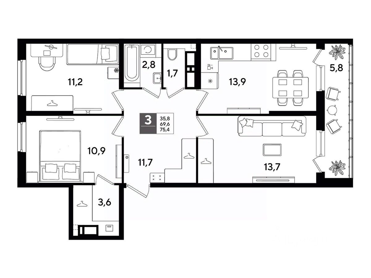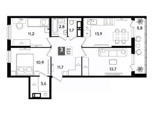 В продаже 3-комнатная квартира от застройщика! Мкр. "DOGMA PARK" г. Краснодар, Литер 25 Срок сдачи: 4 кв. 2027, общей площадью 75.3 кв.м., на 14 этаже.