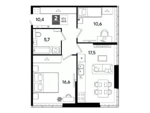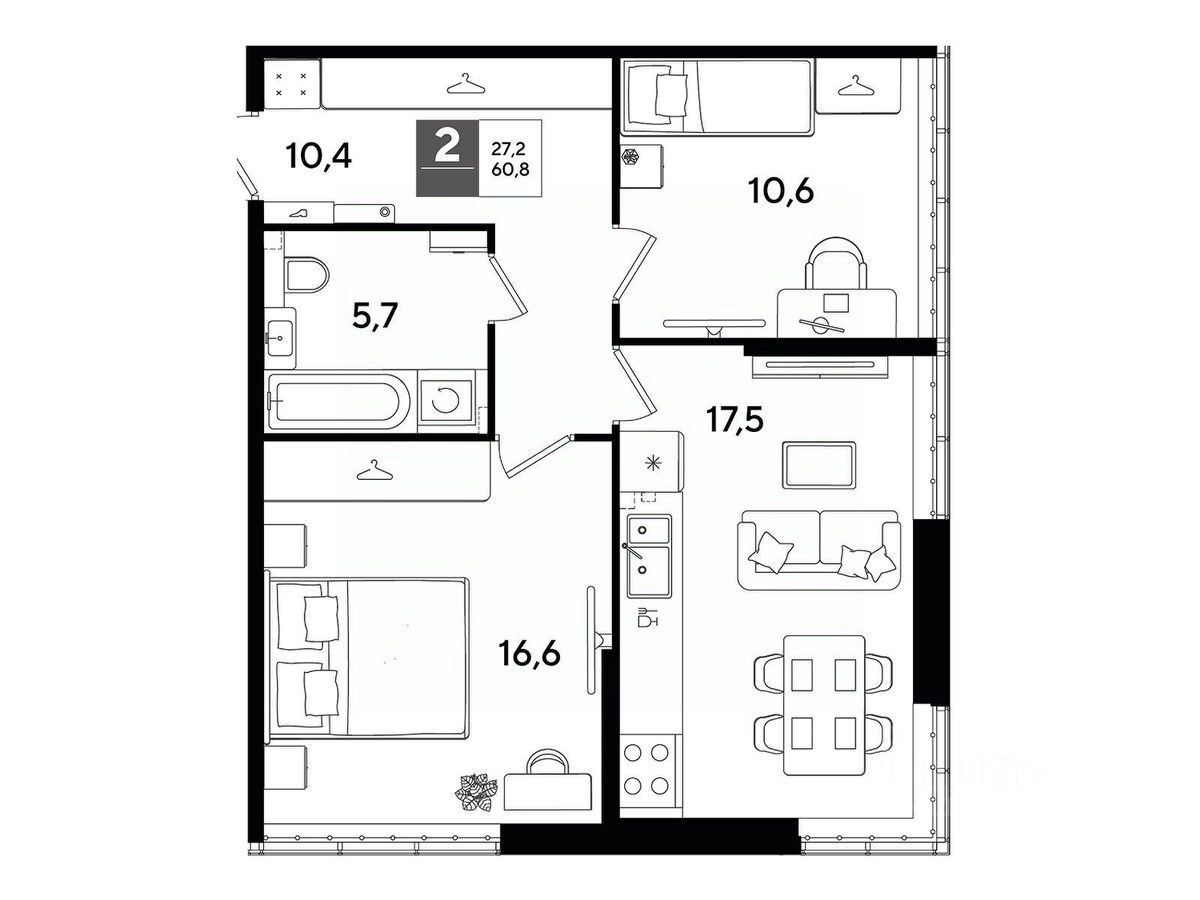 В продаже 2-комнатная квартира от застройщика! Мкр. "DOGMA PARK" г. Краснодар, Литер 25 Срок сдачи: 4 кв. 2027, общей площадью 60.8 кв.м., на 2 этаже.