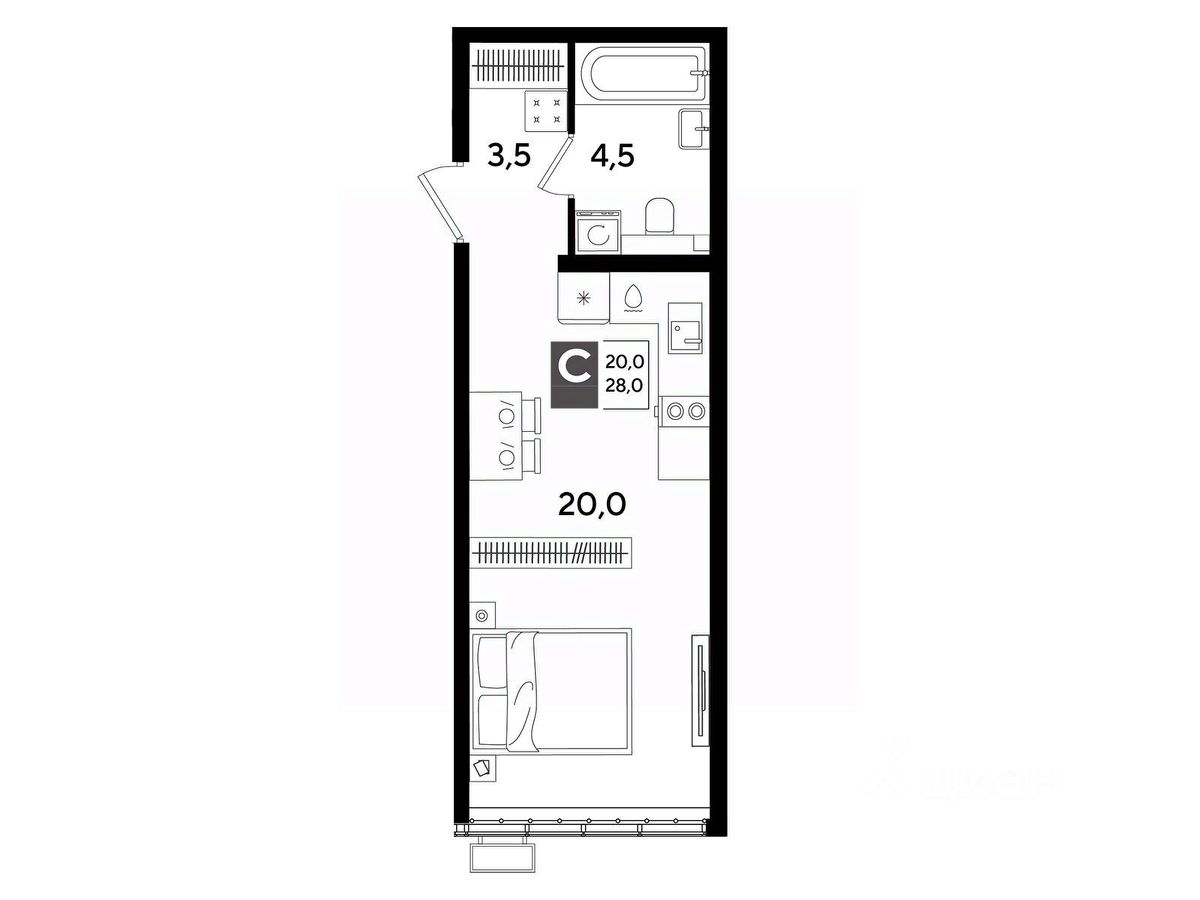 В продаже квартира-студия от застройщика! Мкр. "DOGMA PARK" г. Краснодар, Литер 35 Срок сдачи: 4 кв. 2027, общей площадью 28 кв.м., на 2 этаже.
