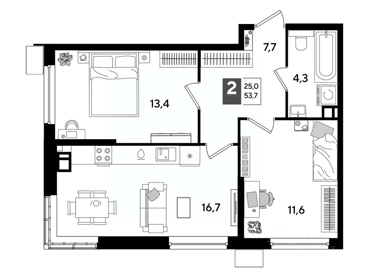 В продаже 2-комнатная квартира от застройщика! Мкр. "DOGMA PARK" г. Краснодар, Литер 35 Срок сдачи: 4 кв. 2027, общей площадью 53.7 кв.м., на 3 этаже.